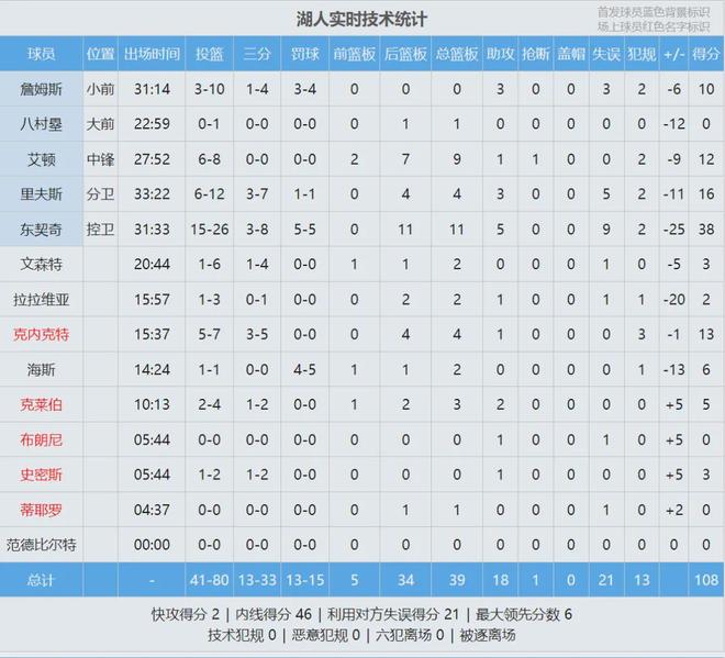 上半场最后时刻,狄龙快攻暴扣,对着詹姆斯做出了后者的标志性庆祝动作。东契奇被限制,第二节6中2得到7分。半场战罢,太阳66-52领先湖人14分。湖人上半场12次失误,太阳只有6次。此外,湖人半场0抢断,太阳9次抢断!