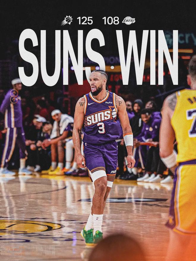 东契奇第四节没有上场,最终太阳125-108大胜湖人。狄龙33分2板2助、吉莱斯皮28分4板5助2断、马威13分6板2断,今天得叫一声龙哥!东契奇38分11板5助、里夫斯16分4板3助、詹姆斯10分3助。太阳快攻得分28-2领先湖人。