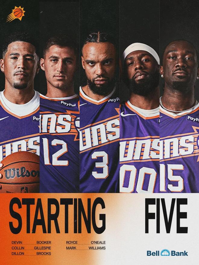 太阳首发:布克、吉莱斯皮、狄龙、罗伊斯-奥尼尔、马克-威廉姆斯。湖人首发:东契奇、里夫斯、詹姆斯、八村塁、艾顿。东契奇第一节又暴走了,单节11中8轰下20分。生涯第28次单节20+,追平布克和利拉德,并列历史第四。