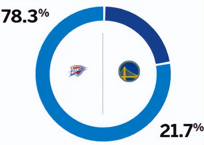 截止到目前,雷霆在开局轰下8连胜后又开启了12连胜之旅,可以说是整个联盟实力断档领先。作为对比,勇士这边可是高开低走,库里伤病不断,整个球队老将太多,目前仅取得11胜10负的战绩,排名西部第八。赛前,美媒ESPN对本场比赛进行了胜率预测,雷霆队胜率高达78.3%,勇士队胜率则仅有21.7%,差距非常明显。