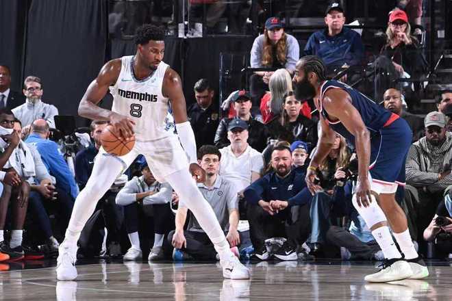 快船过去3场连续客场输给灰熊、森林狼与火箭遭遇3连败,灰熊上一场主场126-130惜败爵士,本赛季前两次交锋快船均输给灰熊。本场快船缺少比尔、琼斯与巴图姆,灰熊缺少伊迪、小皮蓬等。首节前5分钟,快船内外开花取得17-9领先优势,灰熊冲击内线追到差5分,快船连得4分扩大9分优势。灰熊一波小高潮追到仅差1分,桑德斯三分命中,贾伦上篮得分,首节结束快船27-25领先灰熊。首节快船18中11超过6成准星,其中三分5中1,哈登0出手1分3助攻;灰熊21中9,其中三分9中2,莫兰特2分。