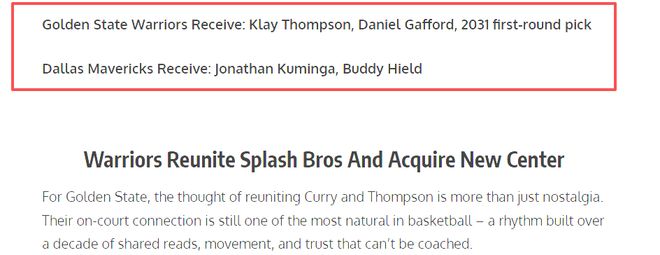 库里表态,2换3交易方案助克莱汤普森重回勇士,库明加辅佐状元郎